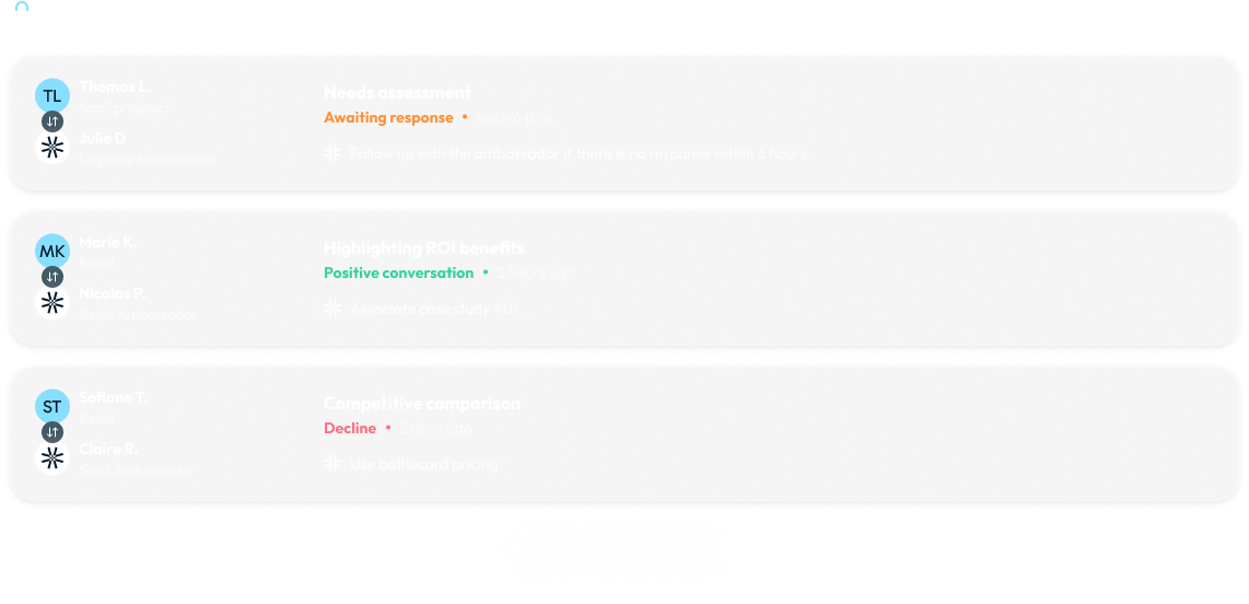 AI agents that connect your CRM, case study and calls to assist your sales during each conversation, in real time to reassure your prospects.